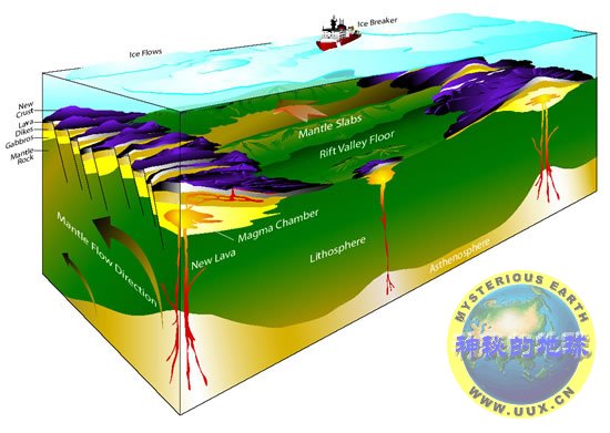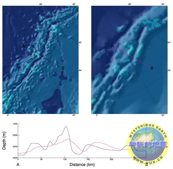 Gakkel山脊对于我们了解全球海洋中的山脊系统来说是重要的,但由于该山脊地处北极高纬度地区的永久海冰下面,人们无法到达,所以它的秘密不为人们所知。直到2001年夏,当有两艘科研破冰船(PFS Polarstern和USCGC Healy)参加的一个联合科考队能够对该山脊详细绘图时,它的秘密才被人们揭开。《自然》杂志报告了这一名为“AMORE 2001”的科考活动的初步地质和地球物理成果。这次科考最令人吃惊的发现也许是,这一扩散速度最慢的山脊原来火山活动颇多。这里的热液活动(表现为“黑烟囱”形式)远比以前所预测的大。
