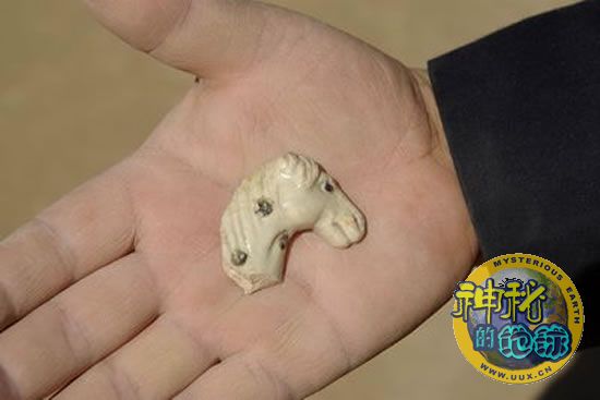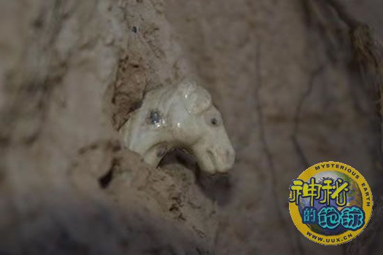 8月9日上午,记者随同武威市知名的文物专家孙寿龄、党寿山、黎大祥驱车前往武威塔儿湾西夏遗址采访遗址安全保护情况时,文物专家孙寿龄带领记者到遗址中心的断层地带实地察看。在一处镶着西夏时期陶瓷碎片的断层旁,具有丰富考古经验的老专家孙寿龄一边对记者说着“这里可能有好东西”,一边用石子在断层处轻刮。突然,孙寿龄发现有一点白瓷露出土层,他上前用石子轻“抠”了几下,一件漂亮的马首浮雕陶瓷现身,马首浮雕文物从沉睡近千年的泥土中“探出”了脑袋,令在场的文物专家和记者惊喜不已。