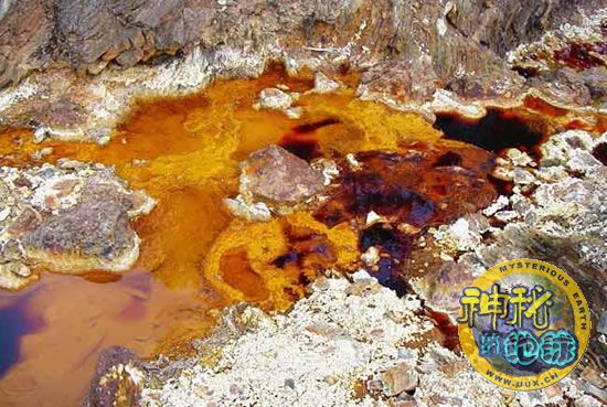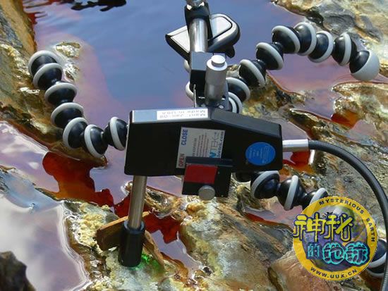 这条河名叫力拓河(Rio Tinto),它的源头在西班牙塞维拉西部。泉水从铁矿石中分离出硫化铁矿物质,使河水变成红色。同时,硫化铁矿物质分离形成硫磺酸。当PH值达到1.5—3时,力拓河水将变得像醋一样酸。力拓河的酸性环境宛如是一个地表下的“生化反应炉”(chemical bioreactor)。科学家们认为,力拓河的生态环境可模拟火星地表下的环境。在力拓河中寻找生物存在的数据,可与火星快车号(Mars Express)或地面上望远镜搜集到的资料相对比。令人吃惊的是,科学家们竟然在这种状况的河水中找到了各种各样生命体的存在,如:细菌、藻类、原生生物(protists)的单细胞生物体和生长于酸性河水上游的真菌。因此,力拓河也就成为了科学家实验火星生命探测最新技术的最理想的场所。