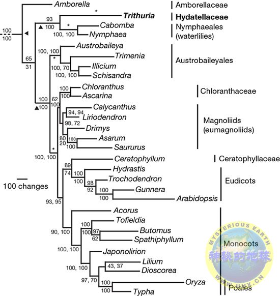 排水草科是被子植物的近亲 来源: 蜘蛛网 时间:2007年11月12日 19:56 排水草科(Hydatellaceae)是小型水生植物,生长在不引人注目的地方,传统上被认为是单子叶开花植物,与草本有关。现在,研究人员利用最新分子技术对它们进行了研究,发现它们原来是睡莲(水百合)等基础被子植物的近亲,这便大大提升了它们的重要性。它们似乎属于一种以前未得到认可的分支,是从接近被子植物根部的地方分出来的一个分支,它是对1999年发现的三个最深的分支的一个根本性的补充,这三个分支曾经重新引发分子生物学家对被子植物起源的兴趣,达尔文曾经将其起源称之为一个“可恶的秘密”。 上一篇 下一篇 TAG: 排水草科 被子植物 近亲