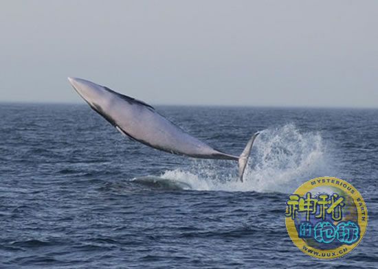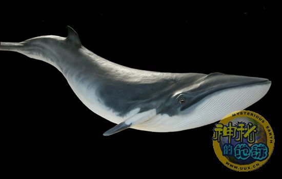 小须鲸形态:体短粗,头部较小,上额前端比较尖锐,正面观如等腰三角形。背鳍与体长的比例较大,高达30厘米,后端弯曲,位于体后1/3处。腹面褶沟50~72条,向后延伸终止于脐的稍前方。背部与体侧带有浅蓝色的暗灰或黑灰色,腹面白色,尾鳍腹面亦为白色。本种主要特征为鳍肢中央部分有一条宽约20~35厘米的白色横带,不过栖息在南极海域的小鳁鲸亚种没有此白色横带。鲸须每侧230~273片,须板和须毛都呈黄白色。