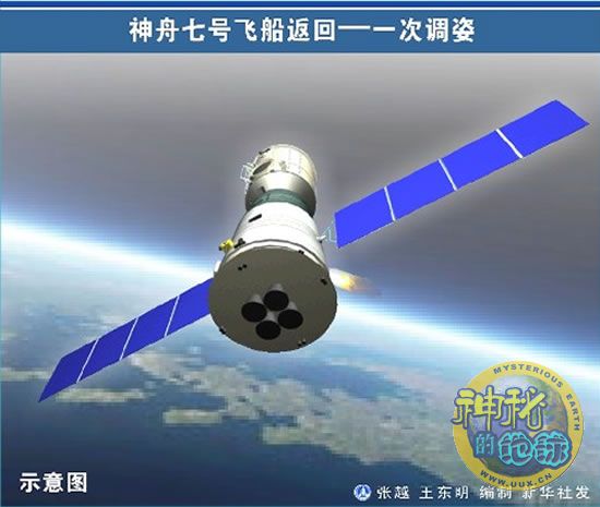 神舟七号飞船返回全过程示意图 来源: 蜘蛛网 时间:2008年9月29日 18:30 神舟七号飞船返回--一次调姿 神舟七号飞船返回--轨道舱和返回舱分离 神舟七号飞船返回--二次调姿 神舟七号飞船返回--返回舱和推进舱分离 神舟七号飞船返回--返回舱进入大气层 神舟七号飞船返回--主伞打开 神舟七号飞船返回--缓冲发动机点火 神舟七号飞船返回--返回舱着陆 来源:新华网 上一篇 下一篇 TAG: 飞船 神舟七号