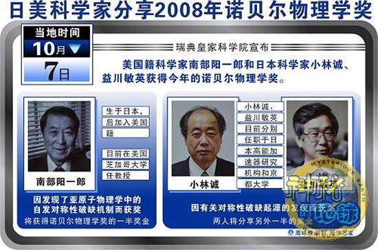 日美科学家分享2008年诺贝尔物理学奖(新华社发)