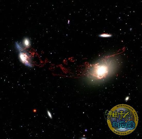 室女座星系中的椭圆星系M86和螺旋星云NGC 4438距离地球大约5千万光年,之前科学家曾经在这两个星系周围发现气体丝,但并没有观测到这两个星系间的联系。