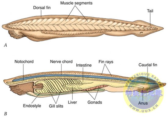 脊椎动物胚胎中原肠胚阶段的组织体是一个信号作用中心,它决定成年后的身体主轴。因为原肠胚的形成在不同脊椎动物之间相差很大,而且涉及广泛的组织运动,所以原肠胚组织体的起源并不太清楚。相比之下,文昌鱼(一种与脊椎动物有较远亲缘关系的脊索动物)的胚胎非常简单,在原肠胚形成中组织运动极少。对文昌鱼Branchiostoma的胚胎所做的一项研究显示,它有一套脊椎动物组织体的同源结构和一套决定身体轴向模式的同源基因,这些基因在原肠胚形成过程中表达,表达模式非常像脊椎动物的表达模式。这说明,脊椎动物的器官形成有很深的演化根源。