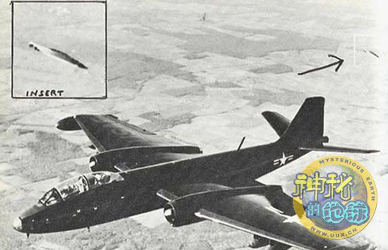 UFO跟踪一架B-47喷气式飞机 来源: 蜘蛛网 时间:2008年10月26日 14:49 这张照片是一位空军试飞员在加利福尼亚州的爱德华空军基地附近拍摄的。照片清晰地显示UFO正紧紧跟随一架B-47喷气式飞机。 上一篇 下一篇 TAG: UFO 喷气式飞机