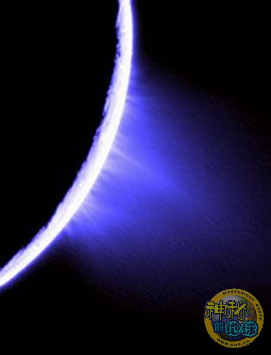 土卫二距土星238020公里,质量为7.30e19千克,直径达498公里。土卫二在太阳系诸多星体中具有较高的反照率,而且其表面有新鲜、干净的空气。美国宇航局喷气推进实验室的专家利用紫外线成像光谱仪(UVIS)对土卫二表面喷出的射流进行紫外线光谱分析后发现,这些射流是由水气组成的,而且,这些射流中的水气并不是由土卫二表面的冰层直接气化面来,它们很可能由土卫二上的液态水形成。这些液态水表面为薄冰覆盖。若覆盖冰层出现裂隙,液态水的温度和压力都会急剧下降,一方面形成水蒸气喷发,另一方面喷出水蒸气迅速冷凝成冰屑,类似于地球上的热泉眼,只不过温度要低得多。如果这一结论成立,那么在土卫二的地表下一定存在面积巨大的海洋。如果土卫二上有海洋存在,那么海洋中应该有生物在存在,如水母、乌贼等软体动物。