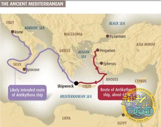 1900年复活节期间,一群希腊海绵捕捞者由北非近海的传统渔场返回罗得岛附近的家乡瑟梅岛,途中忽然遭到风暴的袭击。他们被吹得偏离了航线,后来终于在克里特岛西北岩石遍布、几乎无人居住的小岛安提基特拉觅得避风的场所。他们想捞些海绵,却在无意之中惊奇地发现了一艘大船的遗骸。在这些渔民看来,这艘古代沉船尽管装有许多货物,但最吸引人的物品却是一大堆青铜和大理石雕像。他们向当局报告了这一发现,并于11月,同几位考古顾问一道返回安提基特拉。清理沉船的工作一直延续到1901年9月。在发掘完毕将近8个月之后——这些文物在水下经历了漫长的岁月,因此,清理上面的凝结物既费时又费力一一他们从这些物品中,找到了一些刻有希腊铭文的青铜碎片。不久后,又发现了一些残片。至此,一套完整的齿轮终于展现在人们面前,其中的几只齿轮还带着文字。