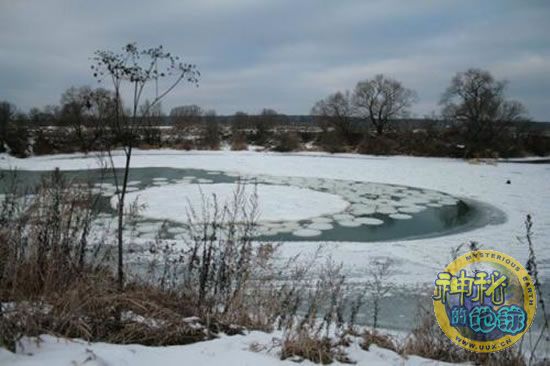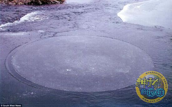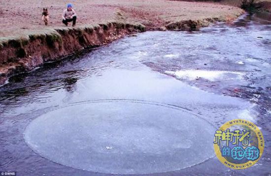 英国一条河流发现神秘圆形冰圈