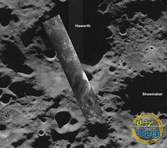 这些图片拍摄于2008年11月17日,覆盖了月球南极霍沃斯陨坑的一部分和北极附近的西尔斯(Seares)陨坑以西的边缘。图中明亮区表示表面光洁度或相对此探月卫星的倾斜度。