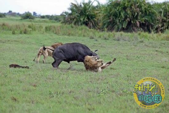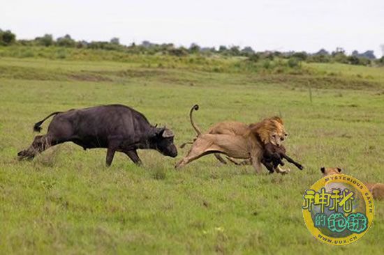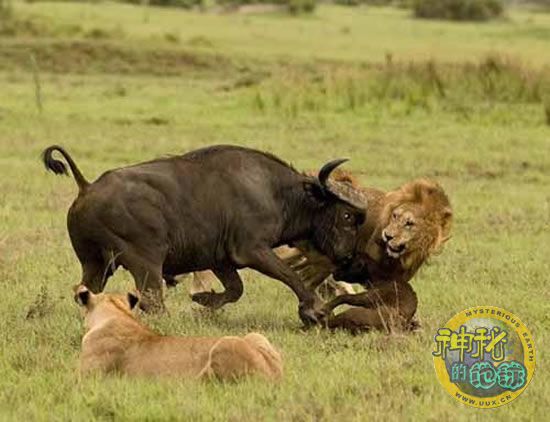 2009年1月18日,在南非博茨瓦纳,摄影师Lee Whittam拍到狮子和非洲野牛大战的精彩场面。当时,一头狮子扑到了一头非洲小野牛,正当它准备开始享用美餐时,小野牛的母亲突然冲向狮子去解救它的孩子,在经过大约15分钟的搏斗后,小野牛最终还是不幸死亡,野牛母亲虽然没有成功解救孩子,但是却展示了伟大的母爱。