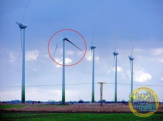 今年1月,林肯郡科尼肖尔姆地区有人报称,在5日凌晨4时许,曾听到一声巨响,次日就发现,当地一个风力发电厂内一架近65米高的巨型风车惨遭“截肢”,一截近20米长的风车扇叶被折断在地,另一片则被撞弯报废。全郡至少有一半居民报称,当夜曾看到一个橙黄色半球体“划破长空,直冲向涡轮机而去”。还有当地居民言之凿凿称,在事发时曾目睹不明飞行物撞击风车,可能是外星人在此发生了“交通事故”。