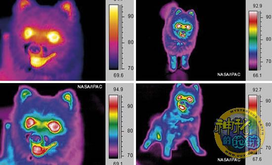 狗的体热示意图表明它皮肤的哪一部分最热以及哪一部分的热量流失到周围环境中了。