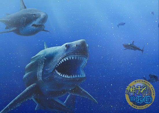 七种史前巨型动物 来源: 蜘蛛网 时间:2009年2月13日 14:02 6、巨型鲨鱼有最强大的咬劲 巨齿鲨(Carcharodon megalodon)复原图 美国16岁男孩潜水时偶然发现的化石是一块史前鲨鱼——巨齿鲨(Carcharodon megalodon)的牙齿化石。巨齿鲨的希腊文原意是巨大的牙齿,目前科学家普遍认为,巨齿鲨体型巨大,体长可达到16米,而普通的大白鲨也仅仅20英尺长(约6.01米)。科学家认为巨齿鲨的重量可能会达到60吨,它在海洋中捕杀鲸鱼等大型海洋生物,它每天要吃近1.2吨的食物。 上一页1234567下一页 上一篇 下一篇