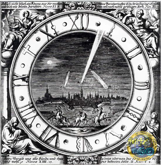 描写4世纪彗星破坏性影响的木刻画,是斯塔尼劳斯·卢别尼特斯基(Stanilaus Lubienietski)于1668年在阿姆斯特朗丹创作,作品名为《Theatrum Cometicum》。