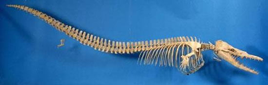 埃及鲸鱼谷(Wadi Hitan)发现的矛齿鲸骨骼化石,在其尾部可以看到很小的后腿状骨骼