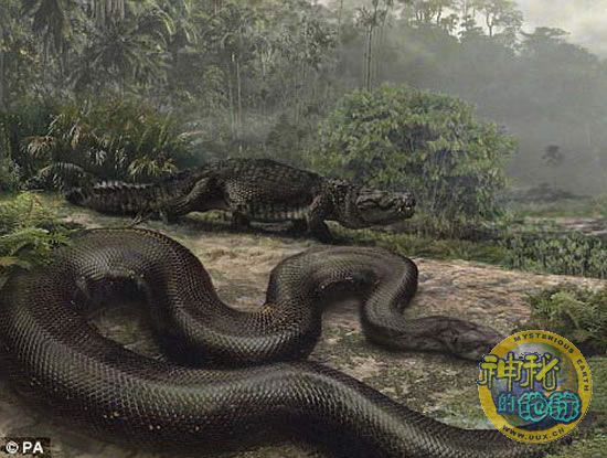在本月初,就有科学家表示曾发现了巨蛇化石,比公共汽车还要长,几乎和小型汽车同等重量,能够吞下一头牛那么大的动物。这条长13.5米的怪物被科学家命名为Titanoboa,这种蛇的饭量非常大,以至于它们平时的食物都是鳄鱼及大海龟等,蛇在吞食它们之前,先将猎物压死,随后整个儿吞食消化。 这种蛇的重量达到惊人的1.25吨左右。科学家们通过分析,得出这种蛇生活在距今6000多万年前的南美洲热点雨林,距恐龙灭绝只有500万年。 科学家认为这条蟒蛇比美国女影星珍妮弗·洛佩兹主演的恐怖片《巨蟒》中描述的那条大蟒蛇还要大很多。负责这次研究的美国佛罗里达大学的乔纳森博士表示:“体型巨大的蛇类往往引起人们的恐慌。不过这条蟒蛇的长度比好莱坞的科幻电影中还要恐怖。电影《巨蟒》中那条试图吃掉洛佩兹的蟒蛇和我们发现的这条巨蟒简直没法比,这条蟒蛇的体型太大了。”这条蛇的其它部分化石在哥伦比亚最大的煤矿塞雷洪一个开放的矿井内被发现,同时被发现的还有鳄鱼及海龟的化石。在热带雨林能够发现化石的机率非常小,因为雨林区的岩石非常少。
