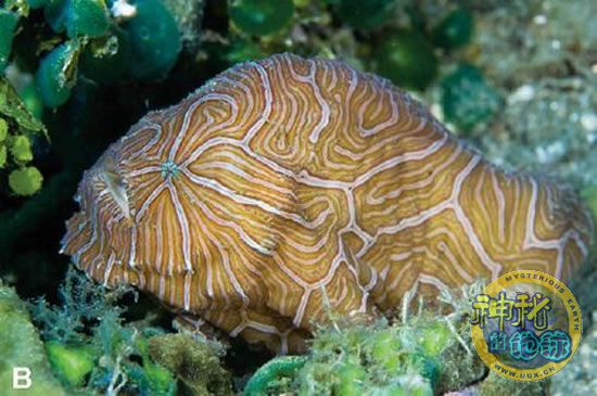 这一新物种的学名叫做“Histiophryne psychedelica”,1年前潜水运动员在印尼安汶岛近海30英尺的海底发现这种鱼,令科学家奇怪的是,在过去20多年的这片近海域潜水勘测中却从未发现过这种鱼类。