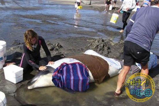 营救人员正在帮助一只海豚