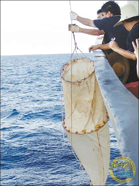 李保华主要负责浮游有孔虫分层拖网的取样,这次采用的是先进的德国产多层拖网。另外在船尾,他们还向海洋250米深处撒网“探宝”,进行单层拖网取样。这些“渔网”其实均为丝绢材料,网眼只有0.15毫米,通过过滤海水,可以将要寻觅的有孔虫网罗其中。