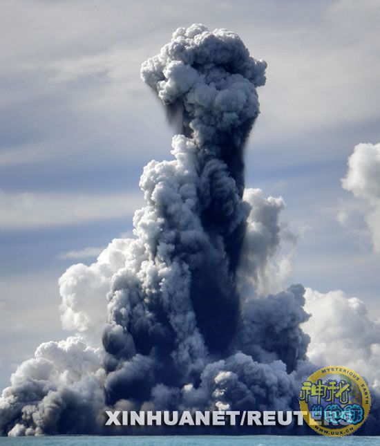 南太平洋岛国汤加海域一海底火山日前爆发,海域上空弥漫着大量硝烟和蒸汽,火山灰直冲高空。