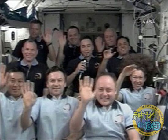 发现号航天飞机与国际空间站的宇航员在分别前合影留念