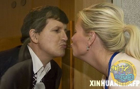 3月25日,在哈萨克斯坦拜科努尔发射场,全球第5名“太空游客”、美国富翁查尔斯·希莫尼隔着玻璃窗与妻子吻别。希莫尼定于26日与两名宇航员一起从拜科努尔发射场升空,前往国际空间站。他预计在空间站停留不到两个星期,4月7日搭乘“联盟”号载人飞船返回地球。(新华社/法新)