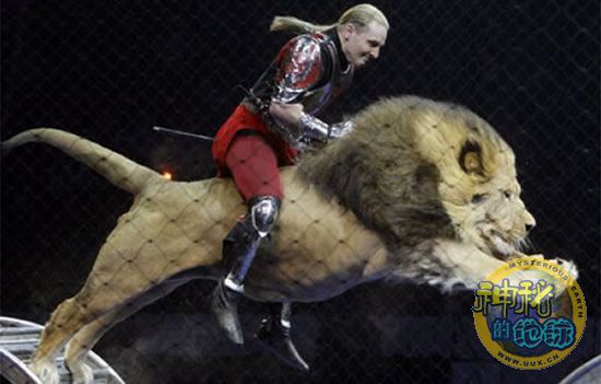 俄罗斯驯兽员上演"人狮之吻" 来源: 蜘蛛网 时间:2009年3月28日 13:44 俄罗斯驯兽员上演"人狮之吻" 驯兽员身披铠甲骑在狮子上 据英国“每日镜报”报道,3月26日俄罗斯圣彼得堡的一场马戏表演吸引了众多观众,驯兽员身披铠甲骑在狮子上,犹如一名威风凛凛的战将。不仅如此,驯兽员还同狮子大秀“人狮之吻”,引得在场观众阵阵惊呼。 来源:中国新闻网 上一篇 下一篇 TAG: 俄罗斯 驯兽员