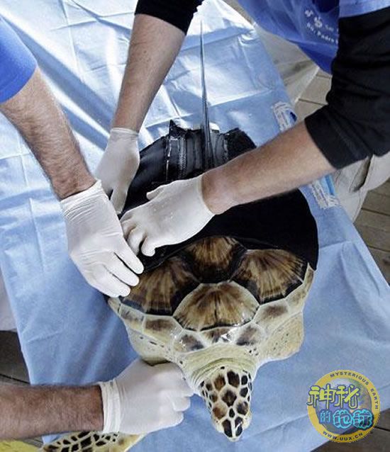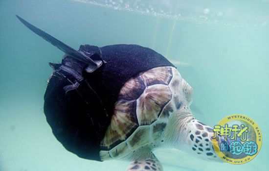 据《每日邮报》10日报道,大西洋绿海龟阿利森(Alison)只有一个鳍,虽然它能游泳,但总是在原地兜圈儿。不过给它安上假肢后,这只可怜的海龟就能沿直线游动了。科学家为它设计了一个特殊的黑色橡胶外套,并用碳纤维把它安装在阿利森身上,让它能随其他海龟一起缓慢前行。