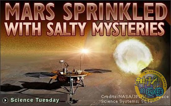 上周,美国德克萨斯州召开的第40届月球和行星科学大会(LPSC)上发表了几项研究报告,几位凤凰号探测器研究小组成员也提出了对火星奇特盐物质的研究分析,他们称这种火星盐物质为“高氯酸盐”(perchlorates)。这种物质可能影响火星水循环,对火星的生命体可能起到推动或抑制的作用,它还可以在火星极地冰冠下形成软泥,对冰层起到润滑和使其滑动的功能。目前,美国太空网综合多位科学家的研究观点,对火星上神秘的高氯酸盐物质进行了深度剖析。