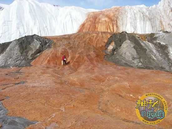 在南极所谓的“锈色冰川”(Blood Falls)——泰勒冰川(Taylor Glacier)喷嘴流出的富含铁矿的红色河流非常醒目地染红了白色的冰。科学家们在报告中说,这一作为“锈色冰川”源头下的水潭居住着在这里生活了数百万年之久的微生物。它为人们提供了一个微生物系统是如何在没有光合作用或来自外部的营养源的情况下可以长时间存活的令人震惊的例子。Jill A. Mikucki及其同事报告说,这一水潭中含有古老的海水,这些海水是在大约150万~400万年前被行进中的冰川截流在那里的。水中缺乏氧气、盐度极高而且充满了铁质。它还含有硫酸盐,这是微生物的一种常见的能源。但令人感到好奇的是那里的硫化物很少,而如果微生物能够将硫酸盐还原成硫化物的话,人们预计通常会在那里找到硫化物。根据在硫酸盐中的氧同位素以及来自一种叫做“腺苷酰硫酸还原酶”的遗传学证据,文章的作者得出结论,这些微生物确实会将硫酸盐进行还原,但它们是通过一种偶联的铁—硫代谢来进行的,这种代谢所用的是来自岩床的铁,并使得硫酸盐还原成一种不同的化合物:亚硫酸盐。研究人员提出,与此种微生物系统类似的情况可能在所谓的“雪球地球”时期中就已经存在,当时的地球是被冰所覆盖的。