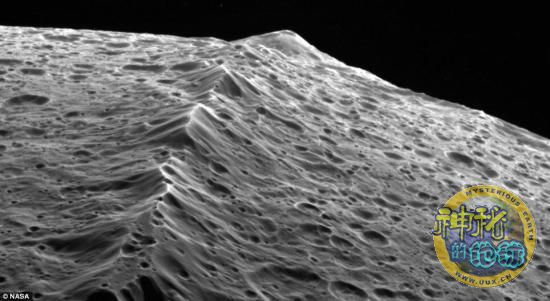 这张照片是在“卡西尼”号靠近土卫八时拍摄的,当时两者相距大约3870公里,显示了这颗卫星坑坑洼洼的表面。