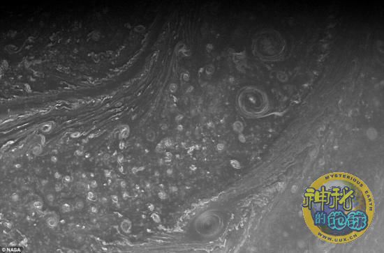 土星北极看上去就像是一个沸腾的锅炉,里面的云带不断翻滚,气体如旋涡般搅动。