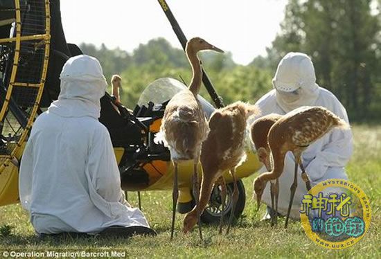 据悉,当小鸣鹤刚破壳而出时,工作人员就让它们逐渐熟悉滑翔机,他们将飞机发动机的声音混合着成年鸣鹤的叫声,并让小鸣鹤经常跟随着带有滚动轴的装置奔跑,最终让它们在空中飞行时跟随着滑翔机。“迁徙行动”主管乔-达夫(Joe Duff)博士称,通过我们独特的方式,鸣鹤已逐渐适应了这种方式,并且能够将滑翔机当成自己的母亲,成功完成迁徙。