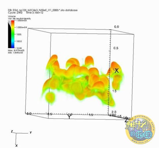 依据最新模拟显示,像这样的气态块状结构进入到宇宙气体和灰尘构成的黑暗区域,然后形成密集的结状结构,在结状结构附近的阴影将过滤强紫外线辐射,这些紫外线辐射可能干扰未来的气态结构形成。