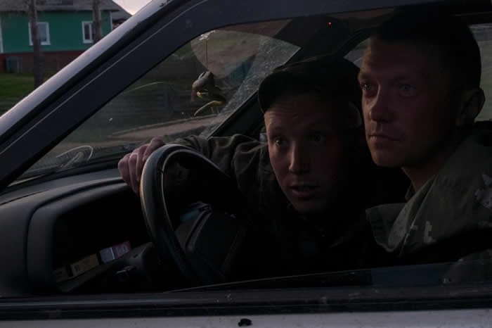 迪米崔(Dmitri)和米夏(Misha)是道嘉屈莱(Dolgoshchel'ye)居民,他们密切注意着库洛伊河(Kuloi River)后方的地平线,因为他们曾在那边看过火箭坠落地表。 PHOTOGRAPH BY RAFFAELE PETRALLA