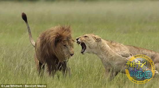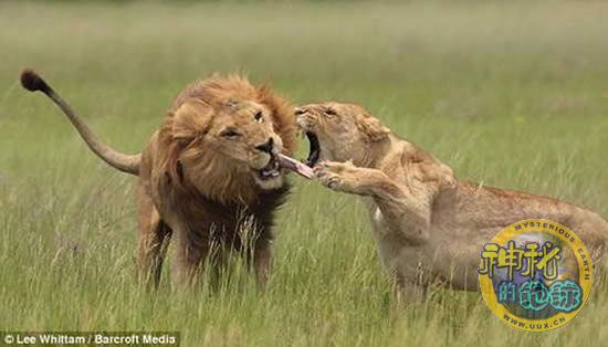 据英国《每日邮报》5月4日报道,野生动物摄影师李-惠特曼拍到了一头母狮因公狮“移情别恋”而“妒火中烧”,并向其发动猛烈攻击的图片。