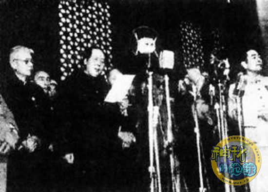 周恩来总理和中苏友协会长宋庆龄、副会长刘少奇到前门车站欢迎。团长是苏联著名作家、苏联作协总书记法捷耶夫,代表团中还有著名作家西蒙诺夫与好些有名的艺术家及高级干部,全团约有40多人。当时,因为客观环境和条件的限制,未能邀请外国的政府代表团或政党代表团参加。这个苏联的民间代表团,与已经在京的朝鲜人民代表团,加上一个来解放区访问的意大利***中央委员斯巴诺,是有幸出席开国大典的仅有的外国人了。苏联的代表团刚刚安顿下来,下午就兴奋地登上了天安门城楼。