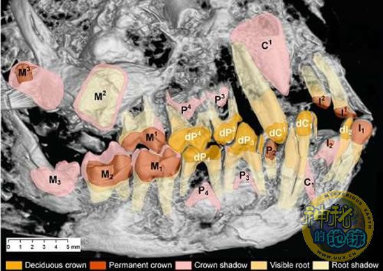 X光照射显示艾达同时有婴儿和成人的牙齿