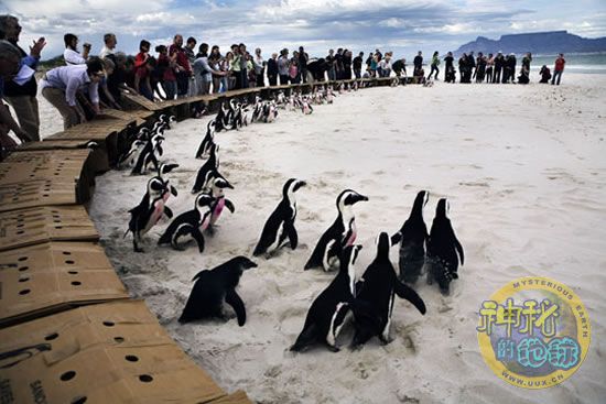 84只非洲企鹅在南非首都开普敦郊外的海滩上被放生 来源: 蜘蛛网 时间:2009年5月23日 13:56 5月21日,84只非洲企鹅在南非首都开普敦郊外的海滩上被放生。这些企鹅曾经在纳米比亚受到石油污染。 中国新闻网 上一篇 下一篇 TAG: 非洲 南非 企鹅 放生