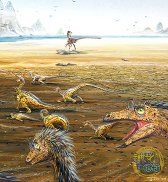 地处内蒙古西部的苏红图地区,是一块连地图上都没有标注的茫茫戈壁滩。戈壁滩上,有一片古老的恐龙墓葬,90 00万年前的白垩纪时代,一群年幼的似鸟龙在这里离奇死亡。奇怪的是,它们的骨骼保存完好,而且死亡时头部均朝着同一方向。今年3月,经过7年多的实验室研究,美国芝加哥古生物学教授保罗.塞利诺(PaulSereno)终于揭开“恐龙墓地”成因:这些似鸟龙在遭受食肉龙的追捕时,惊慌逃窜,误入沼泽而死。