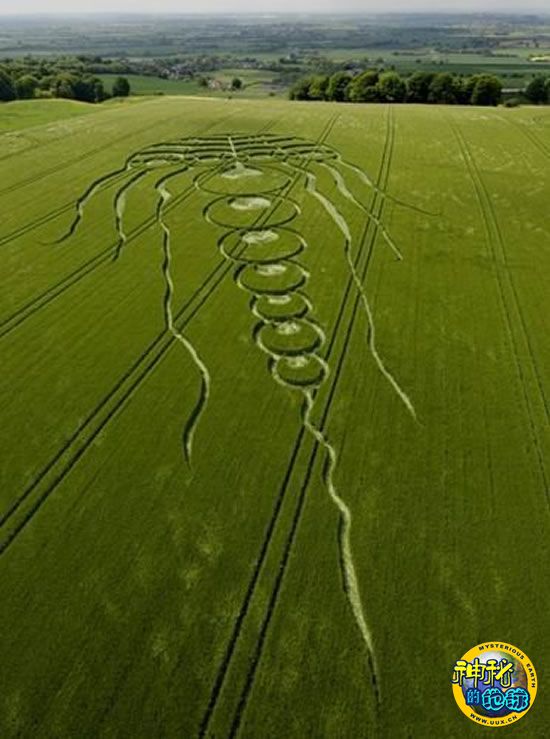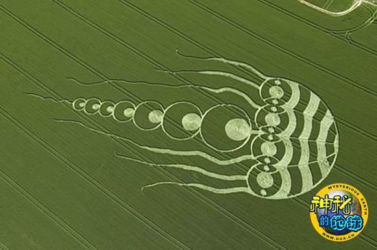 英国发现迄今最大麦田怪圈:巨型水母入侵地球