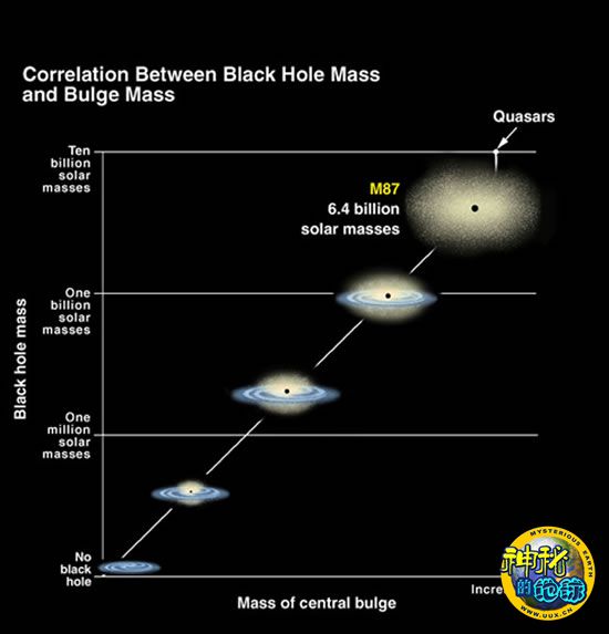 最近得出的黑洞质量更大的研究结果还有助于揭开被称作类星体的正在形成中的遥远星系的质量之谜。这些宇宙形成之初的神秘“居民”是一些非常明亮、正在形成的星系,它们拥有的黑洞被气体和尘埃包围,这种情况在恒星形成过程中非常常见。格哈德特表示,类星体非常庞大,质量大约是太阳的100亿倍,“但是我们在本星系里从没看到过这样庞大的黑洞。以前我们怀疑我们对类星体的质量进行测量得出的结果是错误的。但是如果我们把M87的质量增加2到3倍,这个问题就会迎刃而解了。”