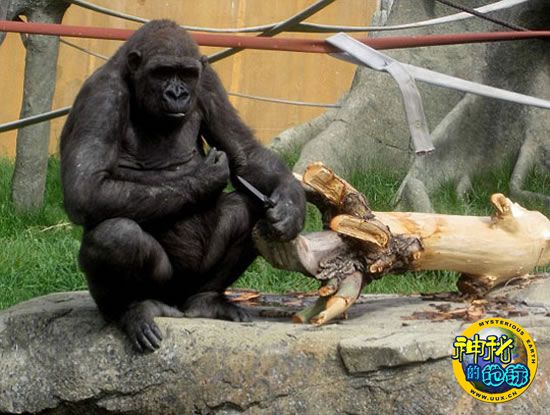 加拿大动物园里一只猩猩玩弄小刀 来源: 蜘蛛网 时间:2009年6月26日 13:49 加拿大动物园里一只猩猩玩弄小刀 据英国媒体报道,近日,有游客在加拿大卡尔加里动物园里拍到了一只猩猩正在玩弄小刀的镜头。据动物园当局解释说这把小刀可能是饲养员失职掉在园内的。趁着猩猩休息之时,动物园的管理员赶快把小刀收回了。也许这只大猩猩不是把这把刀当玩具,而是当成了一种力量的象征。 (来源:中国新闻网) 上一篇 下一篇 TAG: 动物园 加拿大 猩猩