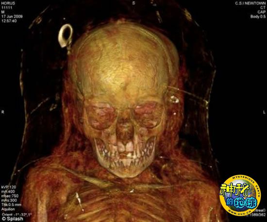 “它们可以让我们在不接触木乃伊的情况下对其展开研究。多年来,考古学家一 直认为‘霍鲁斯’是一个名叫‘霍鲁思’的女孩,在找到莎草纸以后,他的身份终于揭开 了。他显然出身富贵人家,他的家族有钱对其进行一流的木乃伊制作。从照片上看,我们 或许可以看到他的大脑已经被摘除,极有可能是通过鼻子。”